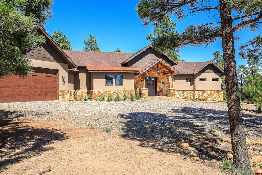 Stunning Mountain Retreat with Expert Craftsmanship and Luxurious Features Built in 2021, this exquisite 3-bedroom, 2.5-bath home is a masterclass in craftsmanship and attention to detail. Nestled on 35 acres bordering the national forest, this home offers the perfect blend of luxury and nature. Step inside to find an open floor plan with soaring 10-foot ceilings and 8-foot doors throughout, highlighting the spaciousness of the home. The grand living room boasts a dramatic 20-foot vaulted ceiling, natural stone fireplace, and beetle kill pine ceilings, adding a rustic yet refined touch. Large windows throughout flood the home with natural light and provide breathtaking mountain views. Every inch of this home is finished with high-end materials, from the knotty alder doors and cabinets to custom lighting and fixtures. The kitchen is a chef’s dream, equipped with premium Bosch appliances, granite countertops, and a wet bar featuring leathered granite and a live-edge counter. Moen plumbing fixtures are found throughout, including in the tiled walk-in showers and the soaking tub in the primary suite. Relax on the covered back patio with its own wood-burning fireplace and take in the majestic mountain views. The oversized garage and additional 30x40 shop with oversized doors provide ample space for vehicles, toys, and storage. The property is located in a gated community and features a sprinkler system to keep the landscaping lush. This home is being offered with top-of-the-line furnishings, negotiable for the right buyer. It’s a rare opportunity to own a mountain retreat of this caliber.