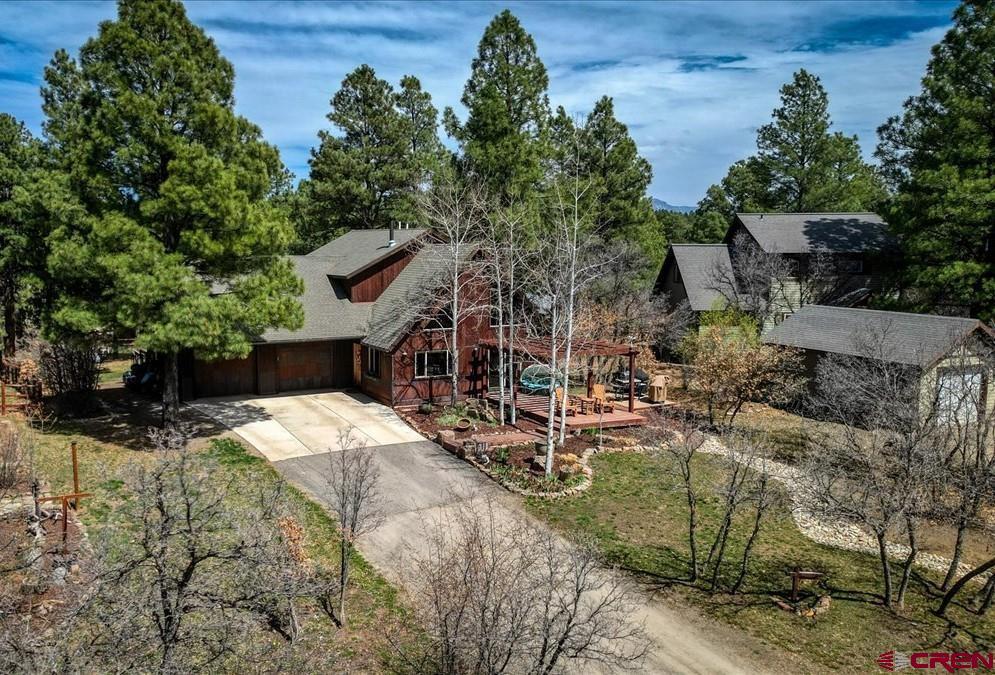 This is a gorgeous home on a wooded lot in Pagosa’s Twin Creek Village designed and built by Kris Mashue of Cedar Creek Homes with soaring tongue-and-groove ceilings, in-floor-radiant heat, wood-burning stove, hardwood floors, granite countertops, custom alder cabinets, walk-in pantry, spacious laundry room, a 350 square foot media room, generous decking and is located across the street from the National Forest and Martinez Canyon. The home also features a charming "flex room" which offers versatile functionality to suit a variety of needs. The current sofa pulls out into a twin-size bed, making it a cozy guest sleeping area—with the barn door closed and a private hallway entrance, it provides both comfort and privacy. Alternatively, the space could be transformed into a playroom, a small office, a craft room, or even a dressing room, with plenty of room to accommodate additional furniture pieces. The home is built in the mountain industrial style mixing high-end wood, tile, metal and stone finishings. It features an open floor plan as well as a primary suite on the main level, with a large, custom master bathroom with an oversized tile shower with glass doors, double shower heads and a large master closet with multiple build-ins. The oversized lot is stunning with multiple seating and outdoor cooking areas, mature native trees such as aspen and ponderosa pines and gorgeous perennial flowers. The home features ample storage throughout the home and a large, 780 square foot attached garage at the end of the paved driveway. Twincreek Village is one of Pagosa Springs most desirable neighborhoods because of its proximity to the National Forest and shopping, walkability and abundant native trees.