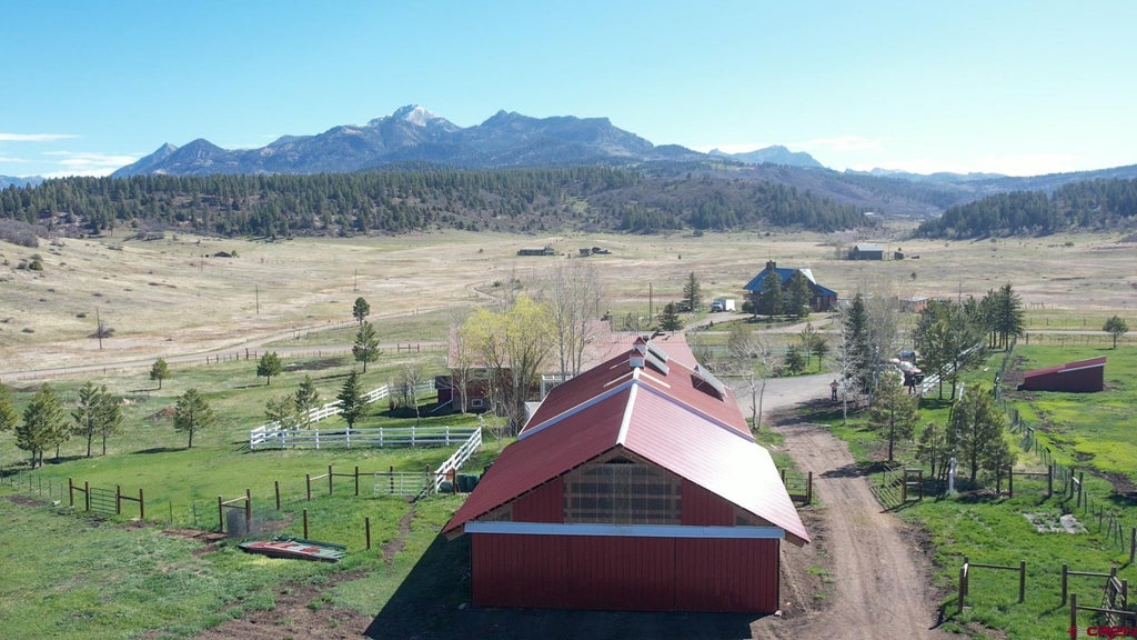Your Dream Ranch Awaits in Pagosa Springs – An Idyllic Blend of Comfort, Nature, and Sustainability Imagine waking up in a beautifully renovated primary suite with a stunning tiled shower, washer & dryer, modern barn doors, and custom closet—your personal sanctuary. From your deck, take in breathtaking views of Pagosa Peak & the San Juan Mountain Range, surrounded by lush valley meadows and your own horse acreage. This property is set up for the ultimate equestrian lifestyle, with a home that combines modern upgrades and natural light, along with 4 separate fenced pastures, a fully equipped barn, and a professional arena. Nestled less than a half-mile from the National Forest and the Weminuche Wilderness, this ranch offers the perfect balance of privacy and adventure. As you wind down your paved driveway, greeted by your own security gate, you're met with a landscape that includes a red farmhouse, a red barn, and a white vinyl fence, all set against the stunning mountain backdrop. The Equestrian Dream: 4-Stall Barn: Equipped with hayloft and built-in drop chutes for easy feeding. Outdoor Arena: 100 x 200 feet with 400,000 lbs of premium sand engineered for performance and competition. 4 Separate Pastures: Recently revitalized, perfect for grazing and turnout. Loafing Shed: A cozy shelter for your livestock. Additional Barn Storage: Secure tack room and feed room, plus a new permitted addition offering 36' x 48' of space, ideal for equipment storage or additional boarding. Sustainability at Its Finest: Solar Power: The home is partially powered by solar panels with the refrigerator, stairwell lighting, and multiple outlets in case of power loss. A battery bank and inverter ensure sustainability, while excess power is sold back to La Plata Electric. Green Features: Solar tube lights and solar-powered roof vents. Off-Grid Potential: Powered by a well, propane, an upgraded 4-bedroom septic system, and solar electric service. Modern Living with Mountain Views: The main level features an open-concept kitchen, dining room, and living room with a grand stone fireplace, and sliding glass doors framing the spectacular views of the valley and mountains. Main Floor: Newly renovated primary suite, living space, and easy access to your attached 2-car garage and sunroom. Lower Level: 2 additional bedrooms, a living room, utility room with washer/dryer hookups, a 3/4 bath, and a separate entrance – perfect for guests or extra privacy. Greenhouse: An attached space for gardening. Hot tub with all weather cover. Extensive Landscaping: Beautifully maintained grounds that feel like your own private park. Generous Parking: Includes space for RV parking with a 36'x 24' shop that’s extra tall for an RV or large equipment. Workshops and Outbuildings: Large workshop space for tools & projects, plus additional storage areas for everything you need. This property is more than just a home; it's a lifestyle. Freedom to enjoy your horses, outdoor adventures, and the natural beauty of Pagosa Springs.