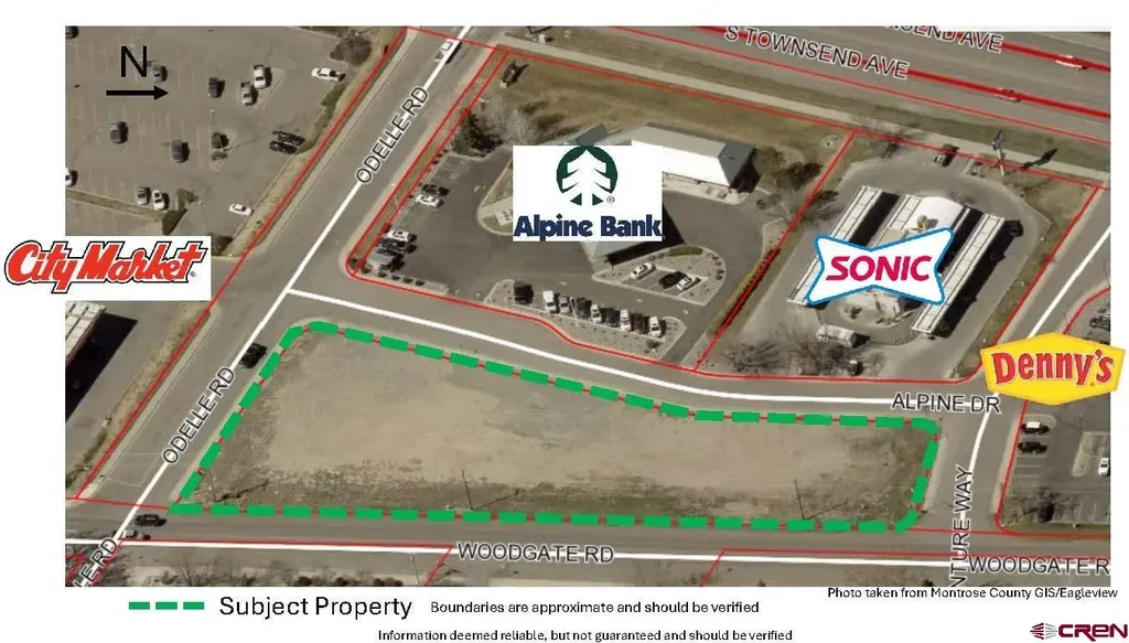 RARE COMMERCIAL LOT IN BOOMING SOUTH TOWNSEND CORRIDOR! Commercial Lot Ready for Development in Highly Desirable Location. Property is situated one block East of S Townsend Ave/S Hwy 550 with 28,000+ daily vehicles. 1.22 acre (MOL) lot has easy accessibility and visibility from Woodgate and Odelle Rds. This property is part of The Alpine Bank Business Park, a well-established complex consisting of a variety of major retail and dining establishments. Surrounding businesses include City Market, Denny’s, Starbucks, Qdoba, McDonalds, Quality Inn & Suites, and Alpine Bank. Zoned B-2 Highway Commercial in the City of Montrose, this district is intended as a shopping and business center for the City and surrounding area. All utilities are available and to the lot. Take advantage of shaping the future of Montrose’s South Corridor commerce!
