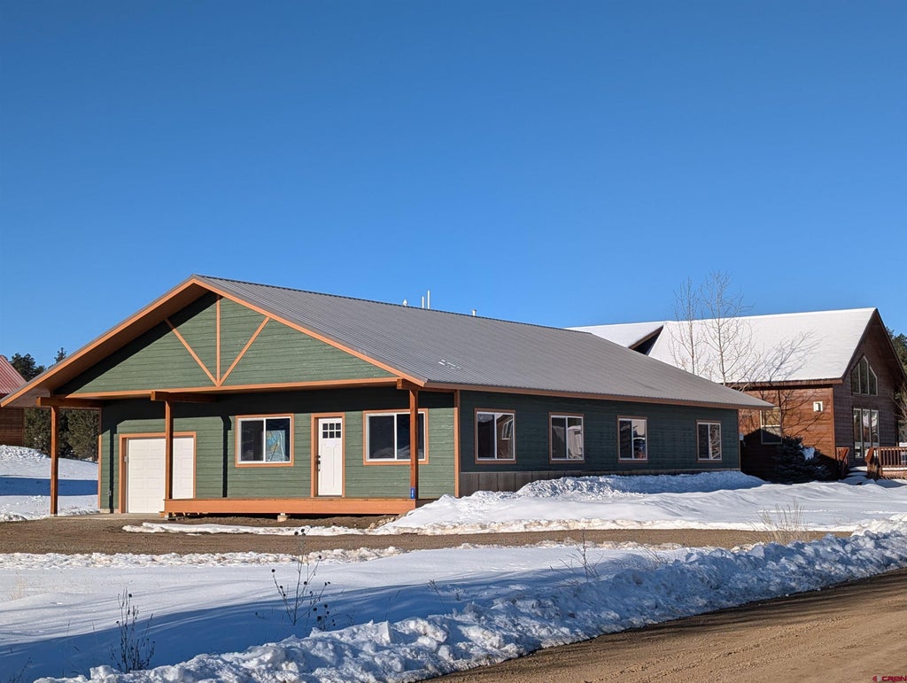 Reduced to only $589K New custom home on 3 lots ( almost 1 acre) Single level home features 3 bedrooms, 2 baths, large laundry/mud room, many custom features such as real wood flooring, custom tile, open floor plan kitchen, granite counters, modern light fixtures, hardware, faucets etc.. dining and living room with large windows to take in the beautiful Mountain views, on the south side of the home is a large covered patio for friends and family gatherings plus a covered front porch to enjoy the views with your morning coffee or the spectacular evening sunsets. Plenty of guest parking and an oversized single car garage. There is plenty of lot space to build a huge shop/garage/fitness studio etc.. Near Lake Hatcher, National forest, park/playground. Just 6 miles to shopping, dining, medical facilities, sport courts, recreation center, more fishing lakes, golf course and only 3 more miles to down town where you will find the Worlds deepest Hot Springs along the San Juan River for fantastic fishing rafting/kayaking/tubing etc.., unique shopping, galleries, dining, hiking/biking trails, seasonal concerts, marathons, parades, car shows, food trucks, farmers market and much much more