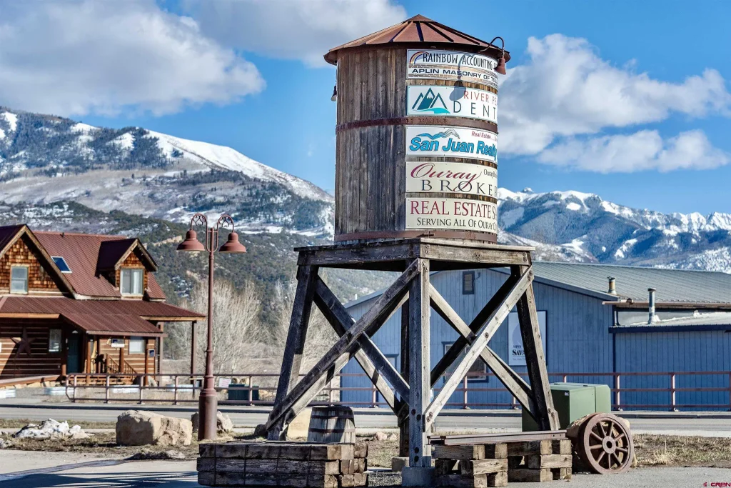 Prime Commercial Building - 50% OWNERSHIP OPPORTUNITY. Seize this exceptional investment opportunity. Currently leased to four thriving businesses, this investment opportunity presents an attractive option for investors seeking the potential for significant long-term capital gains while benefiting from a small positive cash flow. Surrounded by breathtaking. iconic 14,000-foot peaks, the distinguished Rio Grande Building is strategically located in Ridgway's thriving commercial heart at the intersection of CO 550 and CO 62, a throughfare between Telluride, Ouray and Montrose, CO. On the river, the property features 28+ parking spaces and provides flexibility for future growth and expansion. It is zoned for diverse commercial uses—including office, retail, and dining. Crafted with superior construction and premium materials such as copper gutters and windows, the architecture pays homage to Ridgway's rich history of mining, ranching and railroad heritage.