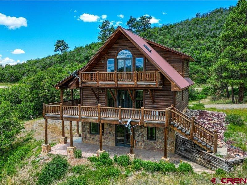 Nestled in the heart of the San Juan Mountain Range, this breathtaking 2-bedroom, 2-bathroom log home offers the perfect blend of rustic charm and modern comfort. Located in a secure gated community, this 2,073 sq. ft. retreat sits on an expansive 36.44 acres, boasting panoramic views that will leave you in awe. • Spacious & Like-New: Lightly used as a part-time residence, this home feels pristine with an open-concept design and soaring ceilings. • Versatile Layout: Includes a cozy family room in the walk-out basement, perfect for gatherings or relaxation. • Nature at Your Doorstep: Floor-to-ceiling Pella windows and patio doors frame stunning mountain vistas, creating a seamless indoor-outdoor experience. • Unique Land Features: Enjoy 36.44 acres of pristine land where two tributaries converge to form the seasonal Oil Well Creek, adding serenity to your private oasis. • Outdoor Adventure: Exclusive access to National Forest entrances through the property owners’ association—ideal for hiking, exploring, or wildlife enthusiasts. • Modern Conveniences: Equipped with a buried 1,000-gallon propane tank, a water conditioning system, and an under-sink reverse osmosis drinking water system for ultimate comfort. • Flexible Ownership: Furniture is negotiable, making your move-in effortless. This is more than a home—it’s a lifestyle. Whether you’re seeking a peaceful retreat, a vacation getaway, or a forever home surrounded by nature, this Chromo gem is a must-see. Schedule your private tour today and experience the magic of the San Juan Mountains!
