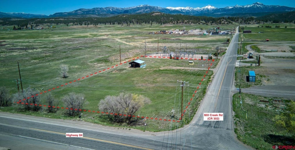 1.88 acre commercial lot at the corner of Highway 84 and Mill Creek Road (County Road 302), which is "smack dab" in the middle of Pagosa's growth corridor and is walking distance to downtown. Ideally located in Archuleta County limits but directly adjacent to the Town. The access/driveway is off Mill Creek, so you shouldn't be having to deal with CDOT. All utilities are available. Tractor Supply is located directly across Highway 84 to the west, fairgrounds across Mill Creek to the south, an LPEA substation to the east and a 74 acre mixed used development to the north (Mountain Crossing). Commercial zoning is fairly broad with uses by right and conditional uses but in broker's opinion this would be a great spot for a retail space, a modernized car wash, a drive-thru, flex space (storage/office units) or even a multifamily workforce housing development.