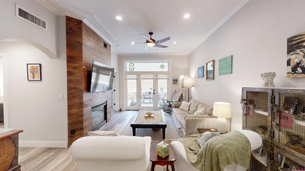 Incredible downtown property with main street just around the corner! This 1st floor, end unit, is on a single level and features 2 bedrooms, 2 bathrooms, granite countertops, a gas fireplace, and a sizeable outdoor patio with views of The Strater Hotel, Hogsback, Perin's Peak, and the General Palmer Hotel. If you need more space for entertaining, there's a fantastic community patio on the other side of the building which has incredible views of Smelter Mountain and the Durango & Silverton Narrow Gauge Railroad! With all of the amenities of downtown right out your front door, there's not much need for vehicles, but don't worry! There are 2 dedicated parking spaces in the garage, to make sure your vehicles are covered and secure until you need to use them again. There is also a dedicated storage facility for this unit located right across the hall. The HOA allows for mid-range short term rentals of 7- 30 days, once approved by the city. The building is private, requiring a key code in order to access the residential portion of the building, for the safety of the owners. Don't miss the opportunity to see this beautiful condo today!