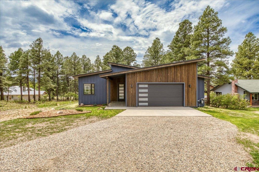 Welcome to stylish mountain modern living in the heart of Pagosa Springs. This beautifully crafted 3-bed, 2-bath home is a perfect blend of sleek design and practical comfort. From its striking curb appeal to the warm, custom finishes inside, every detail has been thoughtfully considered. Durable luxury vinyl tile flooring, granite countertops, backlit mirrors, and hand-selected tile add style throughout. The open-concept living area is anchored by a stunning showpiece gas fireplace. Massive 8-foot doors and oversized windows bring in exceptional natural light, creating a bright, inviting atmosphere in every room. The kitchen is both beautiful and functional, featuring a spacious butler's pantry perfect for entertaining or additional prep space. Split floor plan gives primary bedroom autonomy from guests or children. Step outside and you'll find a large, inviting deck - designed for year-round enjoyment. The oversized 2-car garage and on-demand hot water heater add practicality to this thoughtfully designed home. All of this is just a short stroll to Pagosa's uptown shopping and dining, making this home the perfect combination of modern convenience and mountain charm.