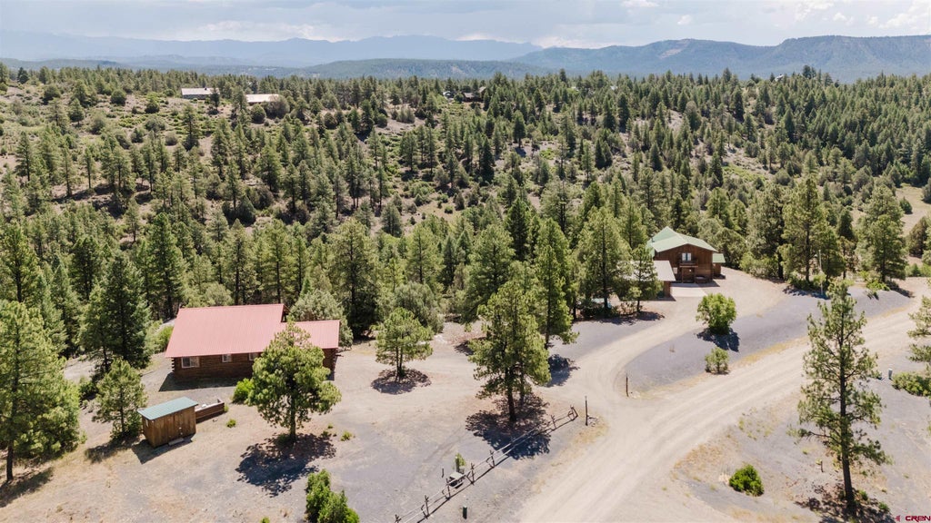 You have to check out 368 Crestone Place – Two Homes on 10 Acres in Pagosa Springs! This is a unique opportunity to own two mountain homes on 10 private, wooded acres in the Pagosa Lakes area. Nestled among ponderosa pines at the end of a quiet cul-de-sac, this property is perfect for multi-generational living, a guest residence, or income potential. The home with the green doors is a 2-bedroom, 2-bath cabin features Saltillo tile floors, aspen ceilings, two fireplaces, blue pine kitchen cabinets, stainless appliances, and a versatile loft. Enjoy dual master suites, a spacious deck with valley views, and a finished 2-car detached garage. A whole-house generator provides peace of mind. The home with the red doors is a 3-bedroom, 2-bath home includes a lock-off guest suite with private patio, reclaimed wood floors, new appliances, stone fireplace with live-edge mantel, covered deck with mountain views, fenced yard, and shaded outdoor spaces. Located in Pagosa Meadows, you’ll enjoy private fishing lakes, a recreation center, and trail access. Just minutes from downtown Pagosa Springs, you can relax in the hot springs, ski Wolf Creek, or explore the San Juan National Forest. SELLER FINANCING is available for qualified buyers!