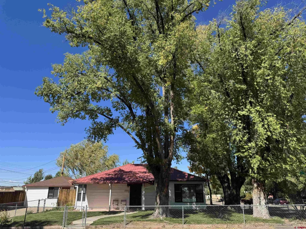 This must-see artistic home features a mural of the sky painted on the living room ceiling, bringing the beauty of nature inside. The home and ADU have been upgraded for the Buyers. The main residence has 2 bedrooms and an office/den. The kitchen opens to the dining and living rooms with a counter for seating. It has an ample pantry. Laundry facilities are nestled by the rear entry. The ADU has a separate entry as well as access through the home, an open floor plan, a private bathroom, and enclosed rear yard. There are 2 parking areas (on each side of the property). This is a corner location with large mature trees gracing the yard, a timed sprinkler system, fenced front and rear areas, and a covered front porch. The owners are offering the property with Owner Carry financing or Lease Option to qualified Buyers with substantial down.